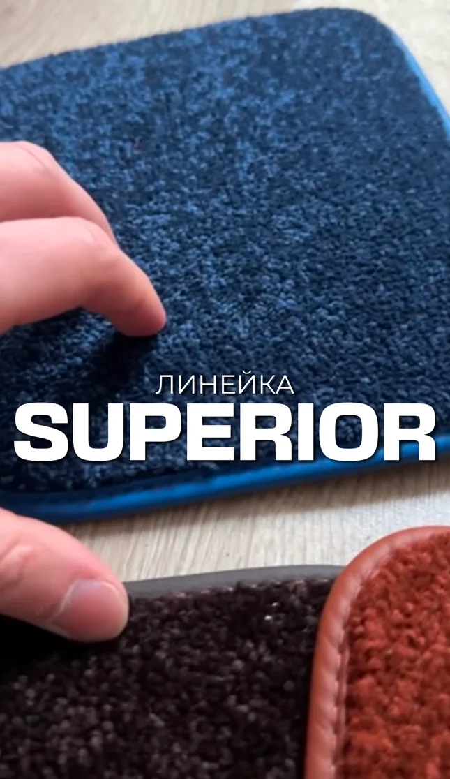 9 линеек материалов — от бельгийского ковролина до натуральной австрийской овчины. Каждый коврик создаётся под ваш автомобиль.